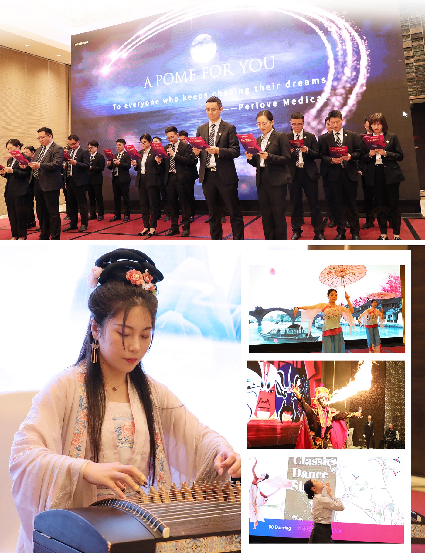 交流晚宴上,普愛醫(yī)療國(guó)際貿(mào)易部門的同事們呈現(xiàn)了一段中英雙語(yǔ)的詩(shī)歌朗誦《春江花月夜》,將中國(guó)古典詩(shī)詞的優(yōu)美意境傳遞給了每一位聽眾。中國(guó)古風(fēng)舞蹈、中國(guó)傳統(tǒng)樂器演奏和神奇的川劇變臉表演,引得現(xiàn)場(chǎng)客戶陣陣歡呼。